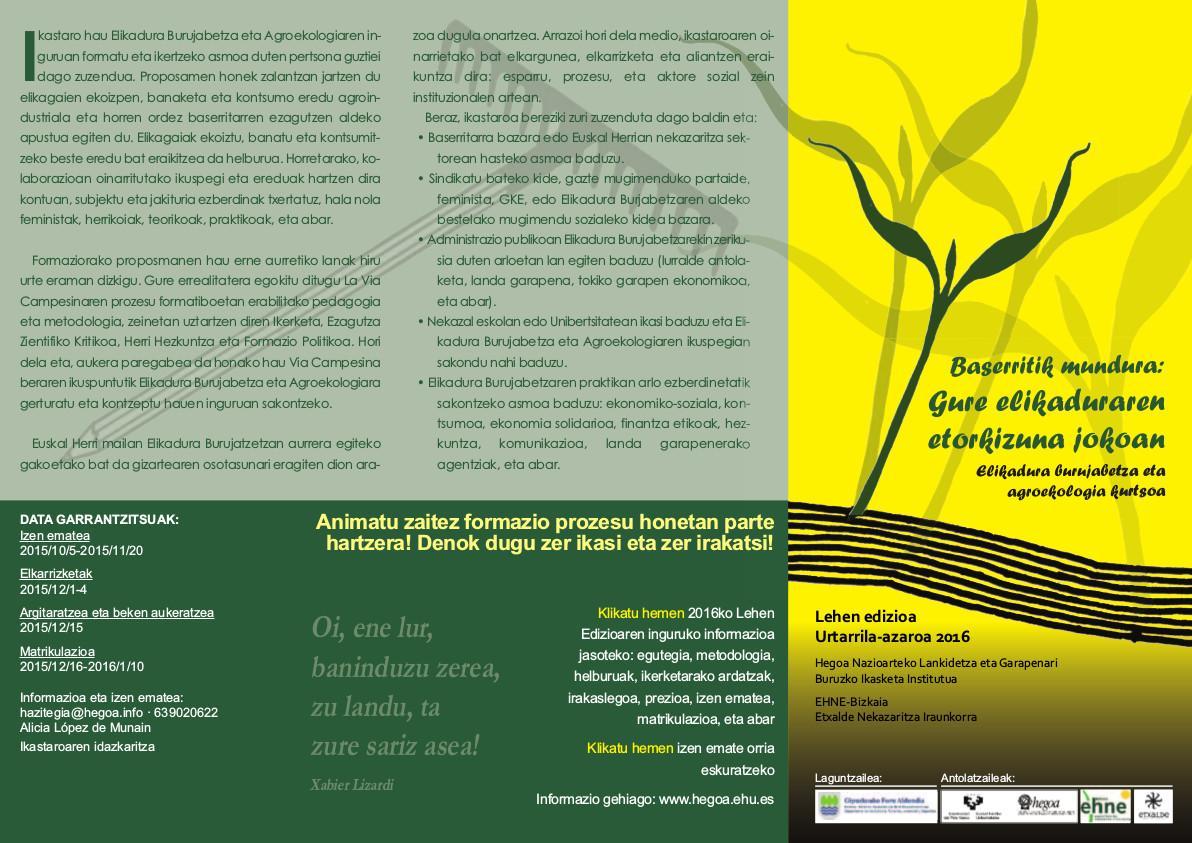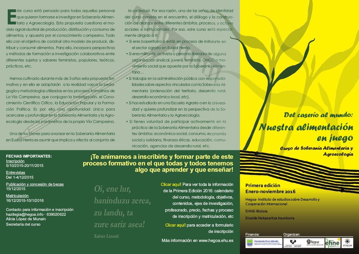 Baserritik mundura: Gure elikaduraren etorkizuna jokoan/Del Caserío al mundo: nuestra alimentación en juego [Curso de Agroecología y Soberanía Alimentaria]