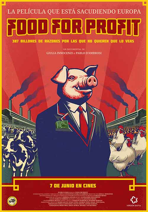 Food for Profit es la primera película documental que muestra la relación entre la industria cárnica, el lobby, y los pasillos del poder. Denuncia cómo Europa transfiere cientos de billones de los impuestos de los contribuyentes a las manos de los granjeros de ganadería intensiva, quienes maltratan a los animales, contaminan el medioambiente, y suponen un peligro potencial para futuras pandemias.
