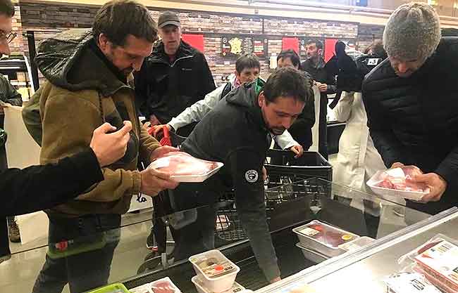Para denunciar la preocupante presencia de carne de cordero proveniente de Nueva Zelanda, miembros de Euskal Herriko Laborarien Batasuna (ELB) desalojaron ayer, 26 de marzo, la sección de carne del supermercado Intermarche.
