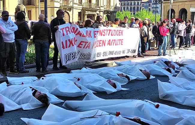 Los sindicatos LAB, ESK, Steilas, EHNE, CGT Nafarroa y el movimiento Etxalde han denunciado un año más las muertes laborales que se están produciendo en los centros de trabajo vascos. Ayer, Día Internacional de la Seguridad y la Salud en el Trabajo, protagonizaron sendas movilizaciones en Iruñea y Donostia para denunciar que los accidentes laborales son consecuencia directa de las ...