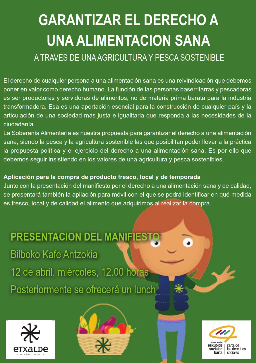 Etxalde: Manifiesto & App: «Garantizar el Derecho a una Alimentación Sana»