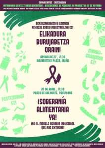 Nafarroako 150 erakundek baino gehiagok elikagaien subiranotasunaren aldeko eta eredu industrialaren aurkako adierazpena sinatu dute. Gainera, Nafarroako gizartea mobilizatzera deitu dute, lehen sektorearen eta, batez ere, ekoizle ekologikoen eta txikien egoeragatik. Bestetik, Valle de Odieta enpresa, Mercadonaren saltoki bat eta AN agroindustriako taldearen egoitza nagusia "zigilatu" dituzte elikadura burujabetzaren eta agroekologiaren aldeko ekimen batean. Parte hartzaileek larunbata honetan Iruñean egingo den manifestazioan parte hartzeko deia ere zabaldu dute.