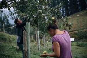 Egoera gertutik ezagutzeko, Garaiko (Bizkaia) Etxeita baserrian elkartu gara Etxaldeko Emakumeekin, baita Via Campesinaren bitartez Mozambiketik etorritako emakume laborari talde batekin ere. Auzolana deitu dute Etxeitan: “Aurten sagar asko dago eta Anitak, gure kideak, laguntza behar du sagar zukua egiteko. Animatzen zara?”, iragarri dute. Goizean goizetik euria barra-barra ari duen arren, auzolanak aurrera jarraitzen duela ziurtatu dute antolatzaileek: “Mantsoago joango gara, baina bagoaz”. Ana de la Maza Llaguno (Algorta-Garai, 1991) duela lau urte hasitako Garai Kontserbak proiektuko kidea da, eta lehen aldia du auzolan batean; aurrekoetan, eginbeharrak arintzeko gertukoen laguntza izan du. Ordea, iazko urrian proiektuak gainezka egin zion: “Uste dut izan zela administrazioetatik daukagun babes eta errekonozimendu faltagatik, eta gu bakarrik gabiltzalako denarekin borrokan. Iaz gainezka egin nuen, lana ez da amaitzen, maiatzetik zabiltza oso topera lan egiten...”. Une horretan jo zuen EHNEk antolatutako eskola agrofeministetan parte hartzera, eta nahiz eta bi haur izanda zail egin zitzaion denbora aurkitzea, “merezi izan zuen”. “Tailerrak asko mugitu ninduen. Babesa sentitu nuen, zaintzarako eta hitz egiteko gela zen”.