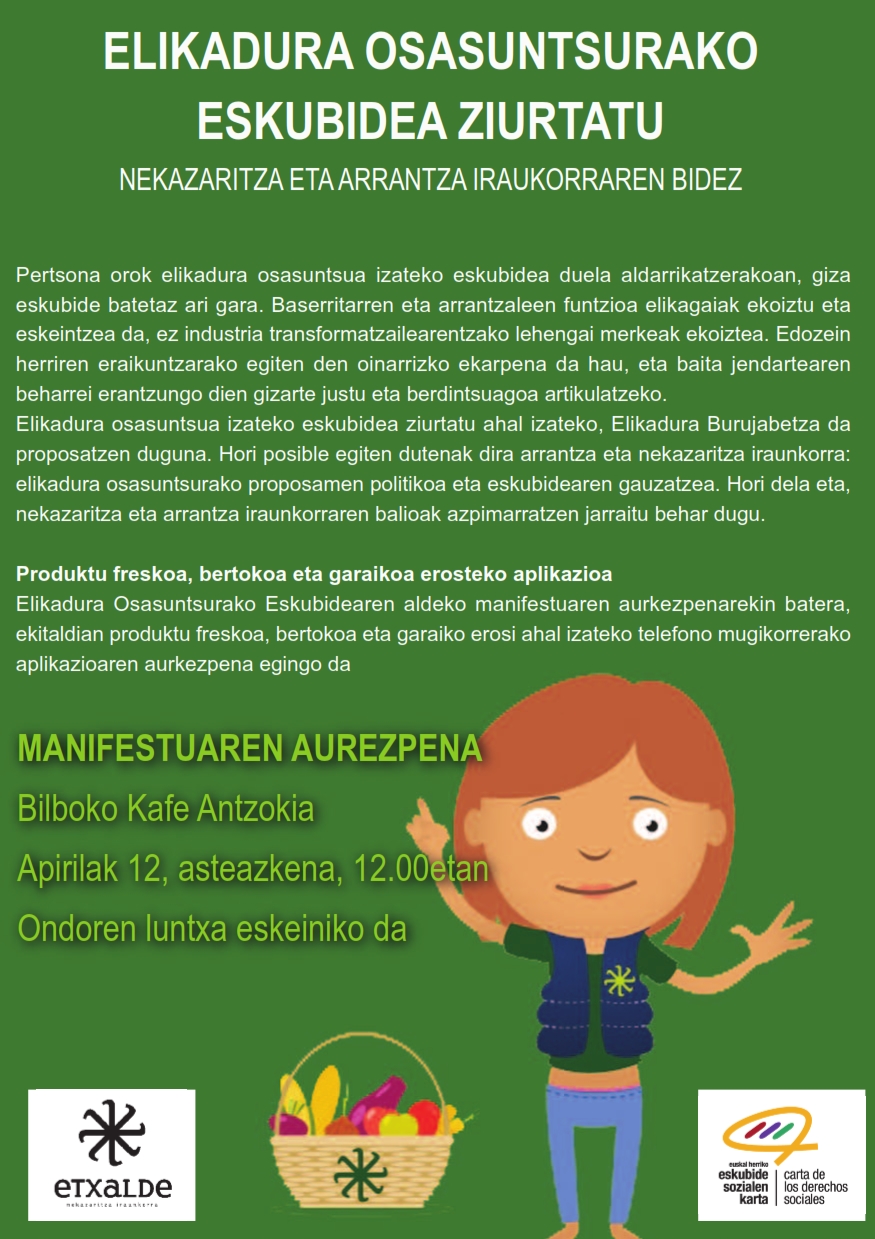 Etxalde: Manifestua & App: «Elikadura Osasuntzurako Eskubidea Ziurtatu»