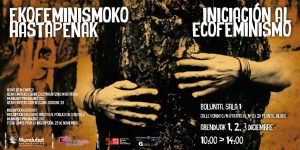 CURSO: INICIACIÓN AL ECOFEMINISMO [Más abajo en euskera] VER/DESCARGAR TRIPTICO, CARTEL Y HOJA INFORMATIVA ¿Cuándo? 1, 2 y 3 de diciembre. ¿Horario? De 10:00 a 14:00 ¿Dónde? Bolunta. Sala 1, Calle Ronda s/n (frente al no 5) 2a planta, Bilbao ¿Por qué? El ecofeminismo reúne los elementos del feminismo y del ecologismo y esto es fundamental para analizar de forma integral las crisis sistémicas en las que estamos instaladas (alimenticia, financiera, energética, social…). Hablar de un mundo sostenible desde la perspectiva ecofeminista es caminar hacia unos modelos de vida que respeten los límites biofísicos del planeta y donde no exista la subordinación de las mujeres. Esto supone hablar de cuerpos, de relaciones de género, de relaciones Norte-Sur y de cómo las personas nos relacionamos con los ecosistemas. En este curso incursionaremos en el pensamiento y en la práctica ecofeminista de forma teórica y aterrizándolo en ámbitos como la alimentación y…
