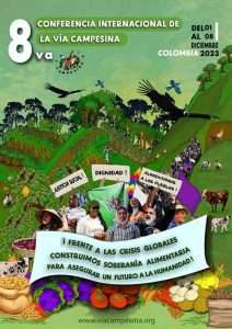 La Vía Campesina munduko nekazarien mugimenduak Bogotan (Kolonbia) egingo duen Nazioarteko VIII. Konferentzia deitu du 2023ko abenduaren 1etik 8ra, "Krisi globalen aurrean, elikadura-subiranotasuna eraikitzen dugu, gizateriaren etorkizuna ziurtatzeko" lelopean.