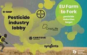 Un lobby bruyant pour un printemps silencieux. Les tactiques de lobbying toxiques de l’industrie des pesticides contre Farm to Fork (“Udaberri isil batentzako lobby zaratatsua. Farm to Fork-aren aurka pestiziden industriak eraman lobby toxikoa) txostenean argiki agertzen da zer nolako estrategia eraginkorra duen agroindustriak montaturik. Lobbygintzak leku handia hartzen du sektoreko multinazionalen lan eta aurrekontuan. Bayer enpresak, demagun, 7.000.000 euro baliatu zituen 2021ean Europar Batasunaren baitan eragiteko. Oro har, lan ardatz ezberdinak dituzte: kontra-ikerketak glifosatoaren aldeko ondorioak zabaltzeko eta toxikotasunaz duda zabaltzeko; farm to fork-aren zikintzeko komunikazioa; AEBen gisara, aliatu dituzten beste estatuen presioa; eta beste.
