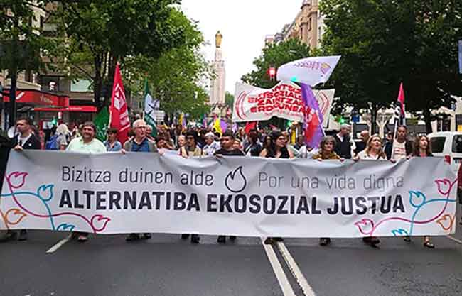 Milaka lagunek alternatiba ekosozial justua aldarrikatu dute Bilbon eta Iruñean