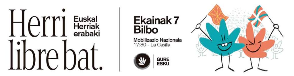 Herri ekinaldi nazionalera deitua du Gure Esku-k ekainaren 7rako, Bilbon, Herri libre bat. Euskal Herriak erabaki lelopean. Euskal Herriko sindikatu nagusiek bat egin dute mobilizazioarekin; hauek, hain zuzen: ELA, LAB, Steilas, EHNE, Hiru eta Etxalde sindikatuek.