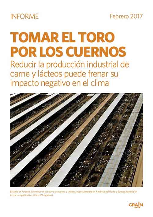 Informe de GRAIN: «Tomar el toro por los cuernos: Reducir la producción industrial de carne y lácteos puede frenar su impacto negativo en el clima»