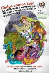 En este sentido, LVC ha solicitado a los Estados miembros de la OMC, en particular a los del Sur Global, para que lideren la tarea de crear un nuevo marco comercial para el comercio agrícola mundial basado en los principios de la soberanía alimentaria, solidaridad e internacionalismo marco y establecerlo como la base del comercio internacional.