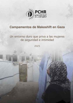 El Centro Palestino de Derechos Humanos (PCHR) ha publicado un informe titulado «Makeshift Camps in Gaza: Un duro entorno que priva a las mujeres de seguridad e intimidad». El informe pone de relieve las «terribles condiciones a las que se enfrentan las mujeres en los campamentos improvisados de Gaza, donde las necesidades humanas básicas están totalmente ausentes». Estas zonas sufren una grave escasez de agua potable, falta de saneamiento y un colapso total de la atención médica, lo que las hace no aptas para la habitación humana. ↓ Descargar informe (castellano) ↓ Las mujeres y las niñas soportan la mayor carga en estas circunstancias, ya que se enfrentan a una grave falta de intimidad y a un mayor riesgo de violencia…